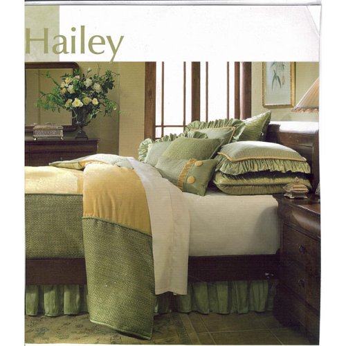 The Hailey Bedding Set features a comforter, 18" bedskirt, two shams and two Euro shams in a beautiful motif in green and gold. The Hailey Decorator Pillow Set features three designer pillows to complete your ensemble.